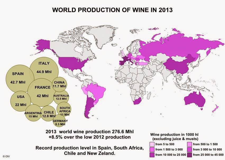 Ebbene non esaltarsi troppo prematuramente, in quanto la produzione mondiale del 2013 è stata piuttosto generosa (278,6 milioni di ettolitri, in crescita del 9% sul 2012) e che la domanda mondiale di vino degli ultimi sette anni, che sembrava essersi stabilizzata intorno a 240 milioni di ettolitri, proprio nel 2013 ha accusato un taglio inaspettato di 2,5 milioni di ettolitri.