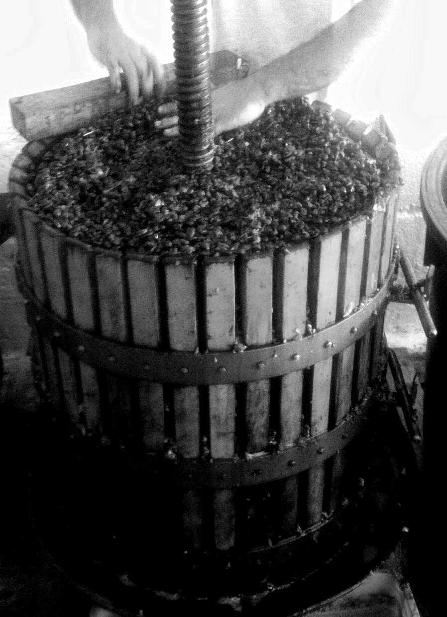 bucce senza lieviti aggiunti, la spremitura con l’antico torchio di