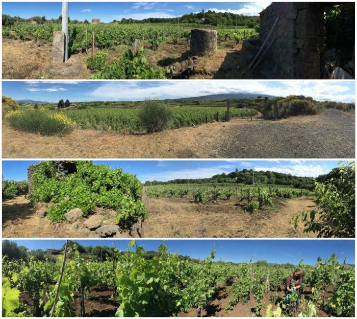 Tutte le vigne sono coltivate ad alberello etneo, tutte all’interno dell’area Etna DOC, quella del Carricante a Milo all’interno dell’Etna DOC Superiore. Le vigne del Nerello Cappuccio e Nerello Mascalese, all’interno delle quali si trovano anche alberelli di Catarratto che vengono vinificate insieme al Carricante, sono state piantate tra il 1910 e il 1940.