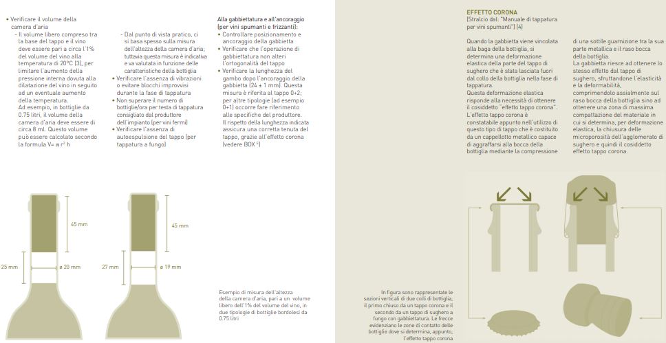 1. Il sughero è composto di circa l’80% di aria. Quando io comprimo un tappo nella fase di tappatura un po’ di questa aria va a finire nella bottiglia e per circa 1 anno vengono cedute bassissime quantitativi di O2 che aiutano il vino ad evolversi.
